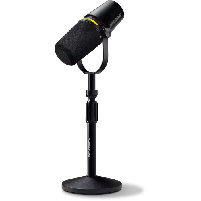 MV7+ er i denne pakken bundlet med et bordstativ med rund fot fra Shure by Gator.